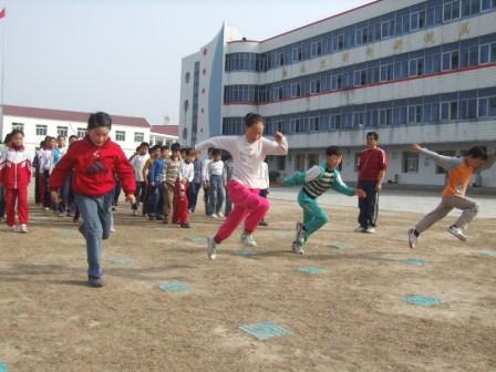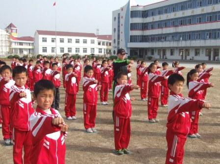 为增强学生体质,龙亢农场中小学在坚持文化教学的同时,不断丰富课外活动内容,学校经常举行各类体育以及综合性运动会,使之制度化,为学生创造了宽松的学习环境。图为龙亢农场中心小学的学生在课间参加武术健身运动和短跑后蹲腿锻炼。