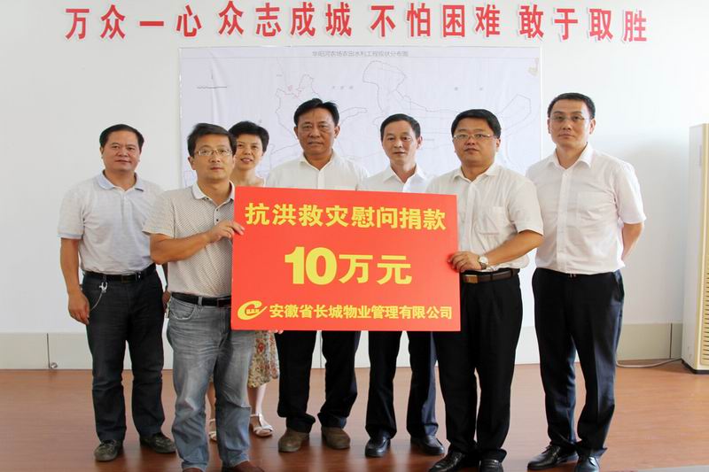 720,长城物业副总王立新、于关云、梁永存、牛亚方、宋青受董事长朱寿明的委托,带着款物到华阳河农场进行抗洪救灾慰问,送去10万元捐款和价值3万元的方便面、矿泉水等救灾物资,表达了同心兄弟的深情厚意,并祝愿勤劳勇敢的华农人在安徽农垦集团的坚定领导下,在社会各界的热心帮扶下,最终战胜洪灾,重建美好家园。与此同时,长城物业还向敬亭山茶场、皖河农场分别捐助5万元和2万元,支援两场灾后重建工作。(鲍广云)